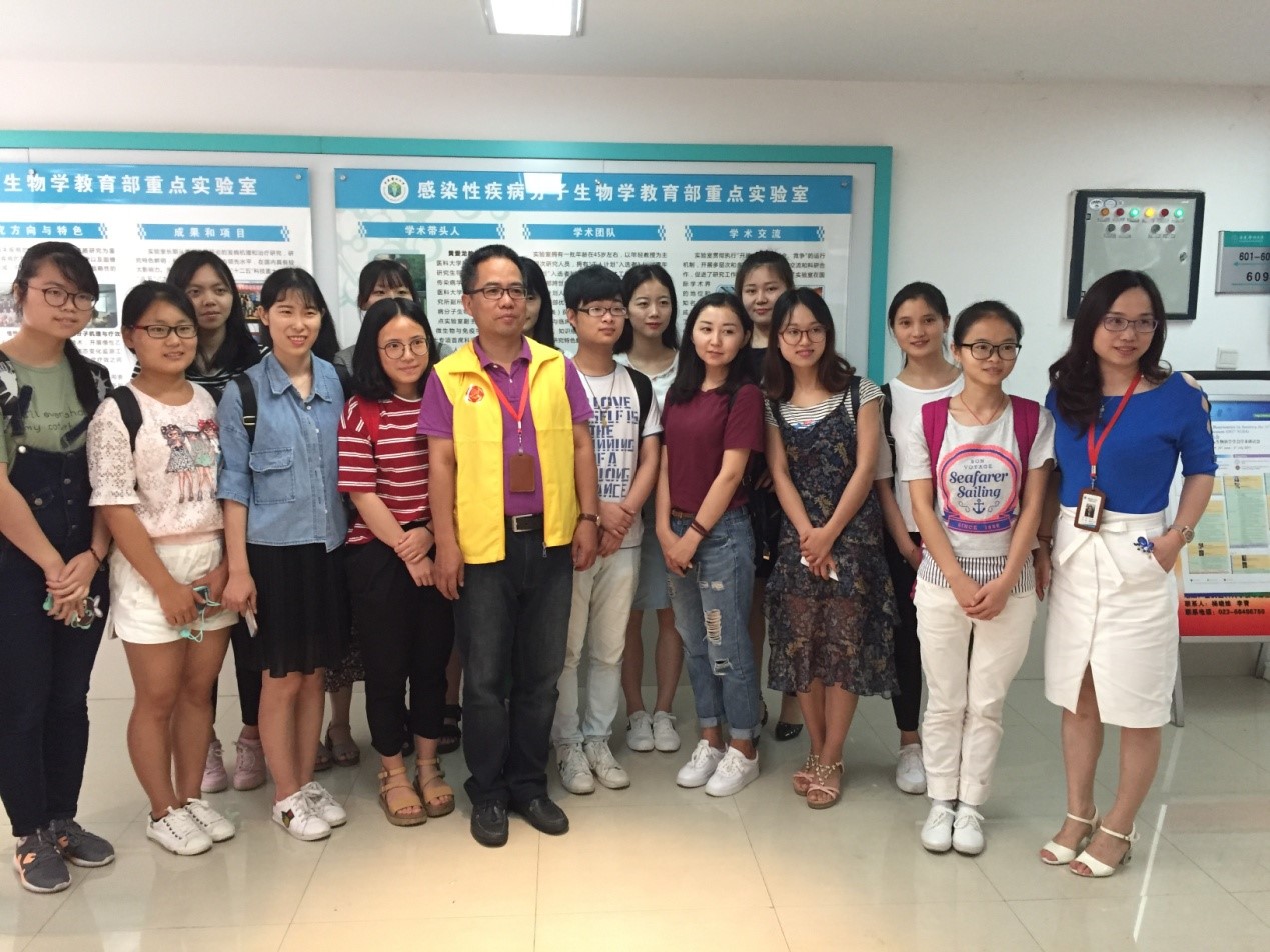 在活动组织老师汤华的带领下,报名者参观了重庆市超声医学工程重点实验室、生科院实验室、临床检验教育部重点实验室和感染性疾病分子生物学教育部重点实验室。科研人员逐一介绍了各个实验室取得的成果和主要研究人员及其研究方向,最后大家还进行了座谈交流会。参观的学生感到了学校取得的成绩,激发了他们热爱科学研究的热情。