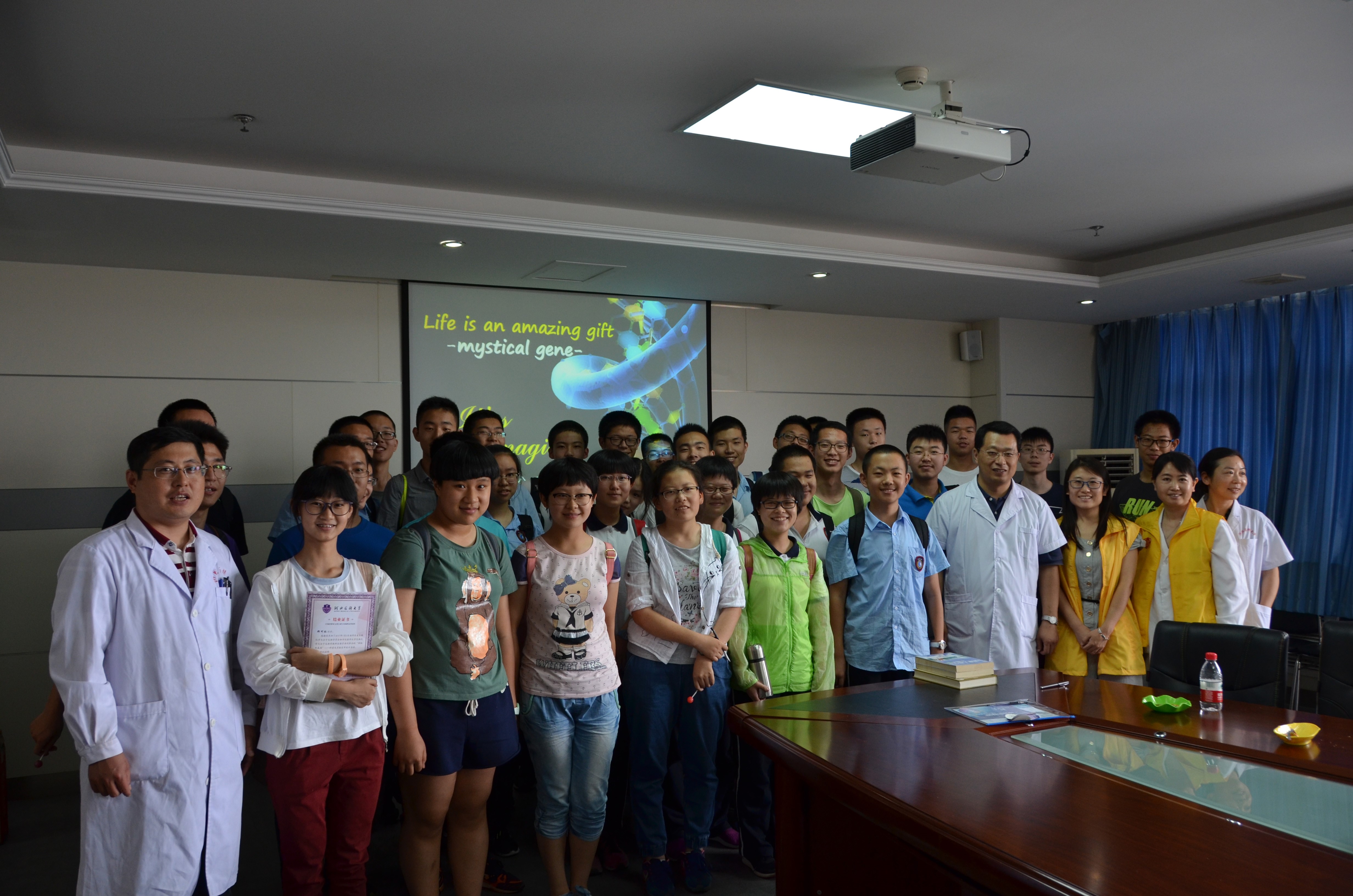 “基因是什么?它和我们身体健康的关系又是什么?”河北医科大学是河北省医学教育和学术机构,是河北省医学、自然科学与高新技术的综合研究与发展中心。2017年7月5日河北省生物化学与分子生物学学会携手河北医科大学生物化学与分子生物学教研室共同举办了科普和实验室开放日活动,31名来自石家庄一中、二中和河北师大附中的高中同学带着他们的问题和迷惑来到了河北医科大学,他们手拉手“闯入”生物化学与分子生物学实验室,带着好奇心去探究神秘的基因,去探寻属于他们的科学“世界”!